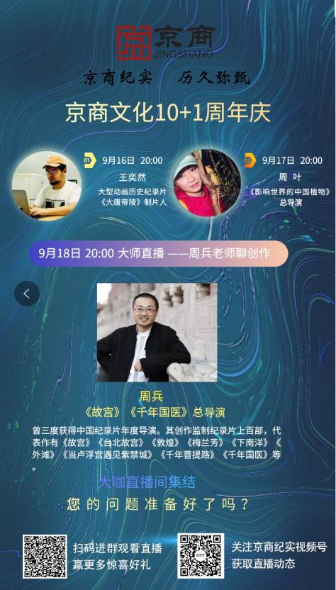 9月16日-9月18日京商機構11周年慶期間,邀請了三位大咖級紀錄片創(chuàng)作者做客直播間,為大家分享作品制作的初衷和過程。